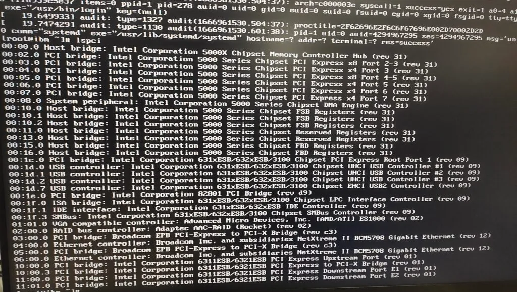 lscpi。其中注意到这个服务器的显卡是 ATI 的 ES1000,这个卡在 IBM 服务器经常见到。