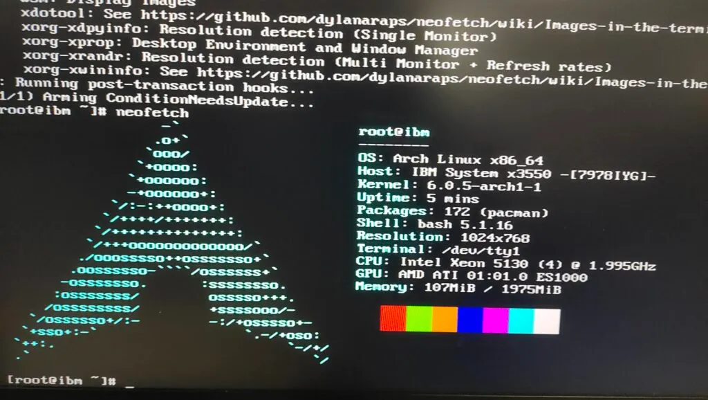 进入系统,在 iso 下输入 ip addr,果然,在 linux 网卡已经可以使用了,lspci 可以找到网卡是博通的 BCM5708。好的,至此既然有了网络,那么装个 arch 好了。