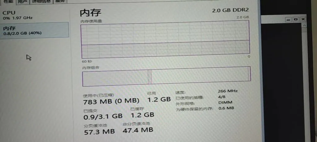 内存是 2GB DDR2,这个信息在开机自检时就已经看到了,让我意想不到的是这 2GB 内存竟然是由 4 条 512MB 的内存组成的。习惯了现在单条 8GB、16GB 甚至 32GB 的内存,看到这 512MB 的内存实在是有些意外。